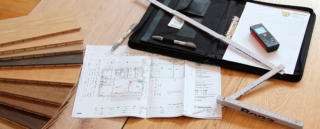 Wir unterstützen Sie gerne bei Ihrer Parkettrenovierung. Von einer fachlich/technisch kompetenten Beratung des Bodenaufbaus bis hin zu Stilberatung mit zahlreichen Parkett-, Farb- und Oberflächenmustern.